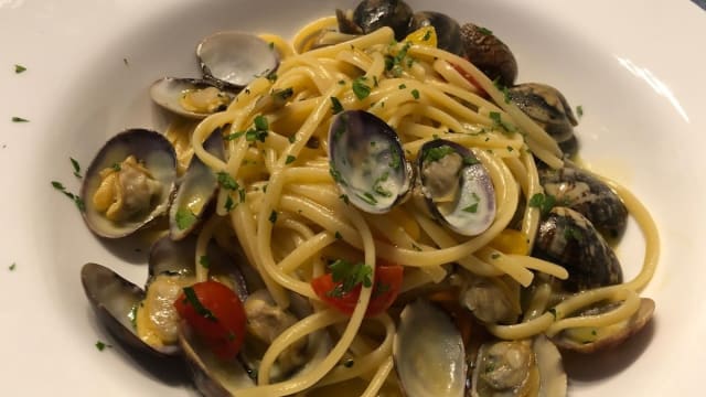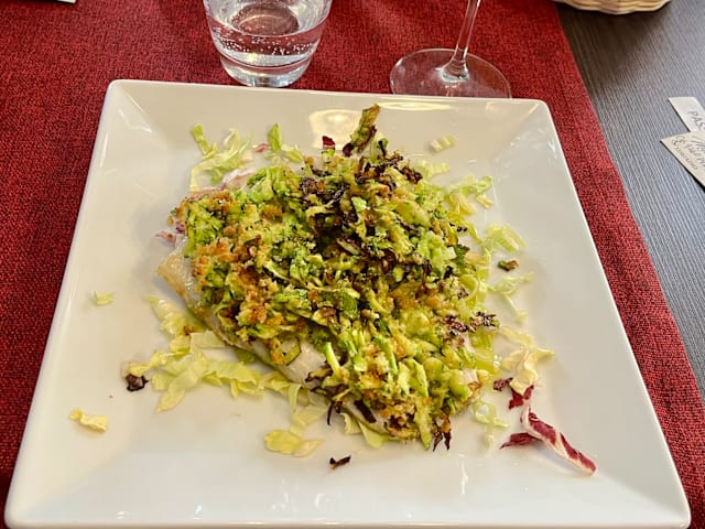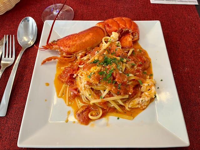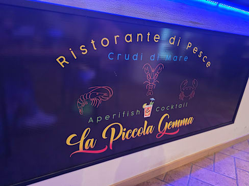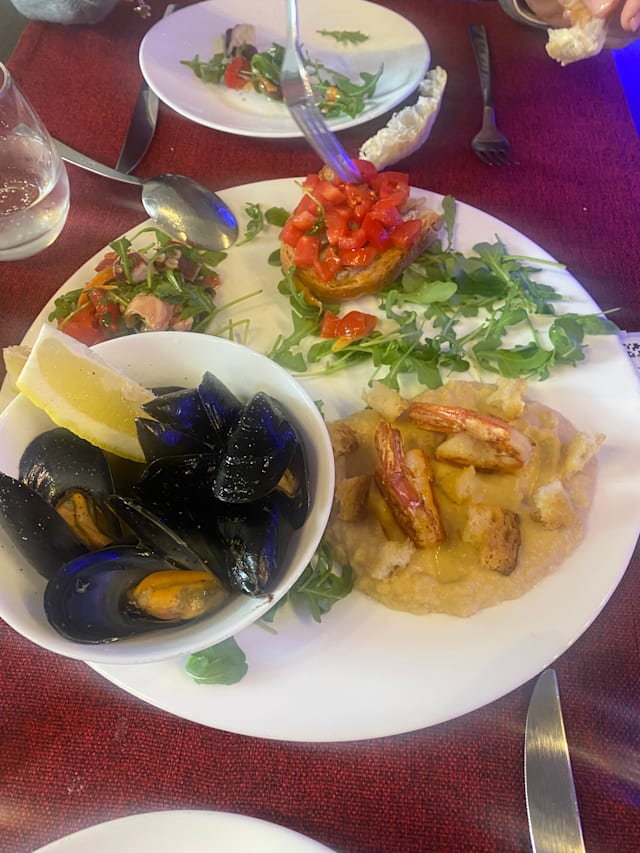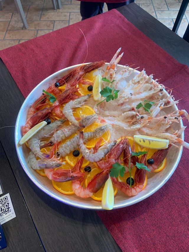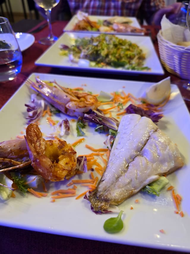 10/10This very friendly restaurant is in the main piazza, next to a bar (we initially walked past the entrance without seeing it). Outside it displays a selection of very reasonably priced set menus, but there's also a very good a la carte menu too. We started with a side salad and small octopus salad each, then had a small seafood plate each. The fish was moist and the langoustine were beautifully cooked. The portion sizes were just right. We also shared a sea bass with a zucchini crust which was excellent, with side dishes of chicory and grilled aubergine. For dessert we had deconstructed mille feuille with either juicy blueberries and cranberries or dark chocolate, and a home made limoncello. This is very well priced gem of a restaurant, worth visiting.