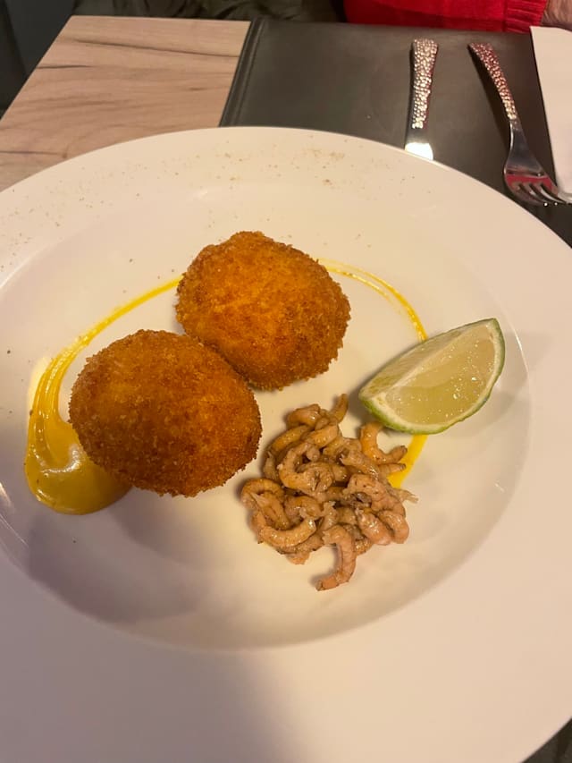10/10My husband and I had a lovely, relaxing meal at La Pierre Bleue. We ordered the ham croquettes to start, my husband had the shrimp pasta (linguine, I believe and I had the grilled octopus. One of the better meals we’ve ever had. Highly recommend.