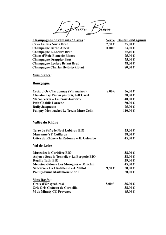 10/10We are very pleased with the entire experience....La Pierre Bleue is our new go-to for when we have guests. Bravo!