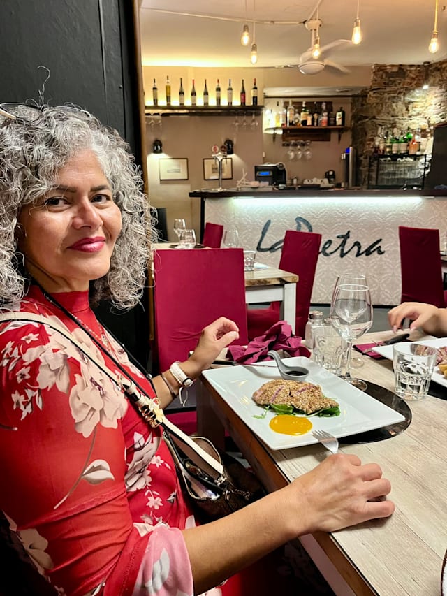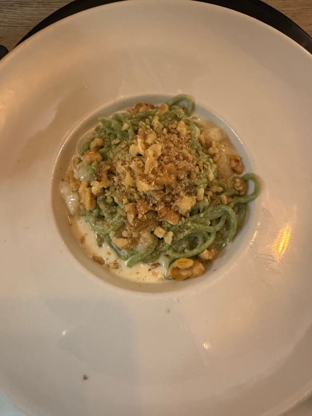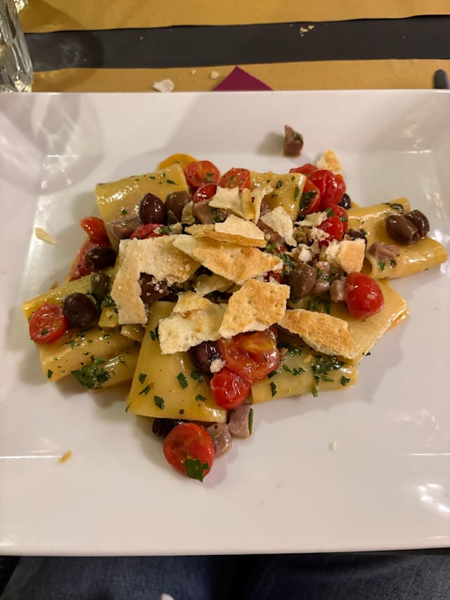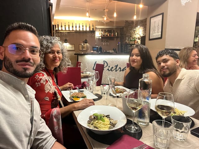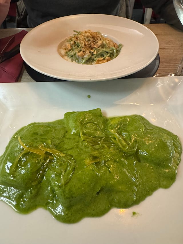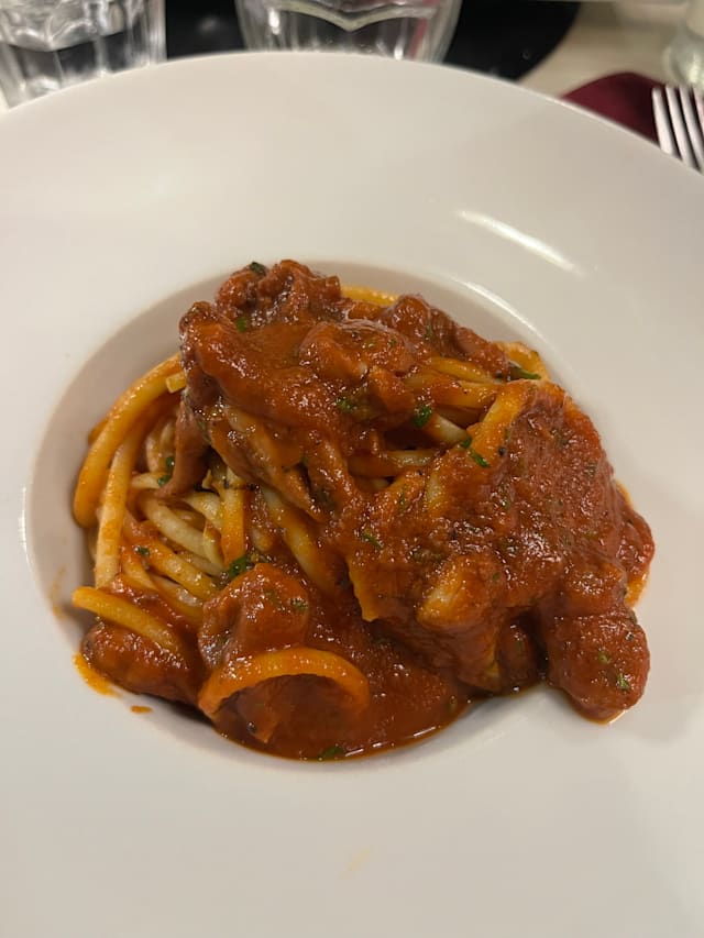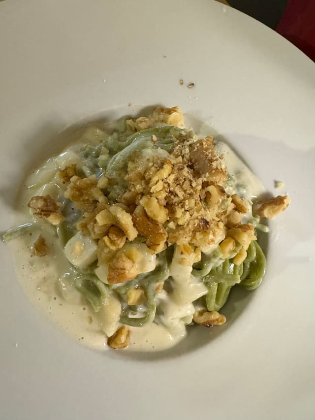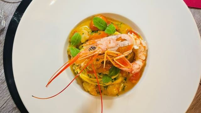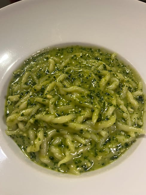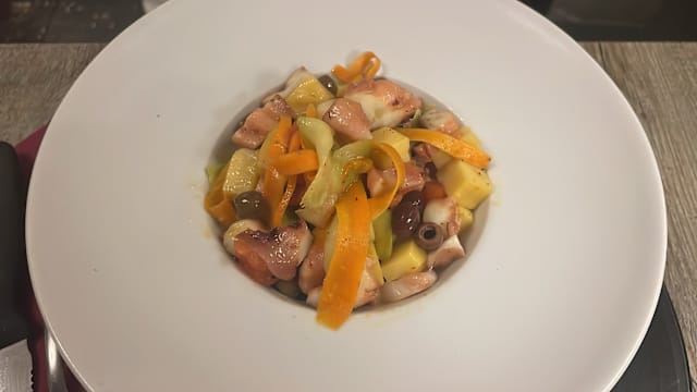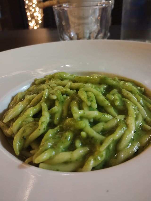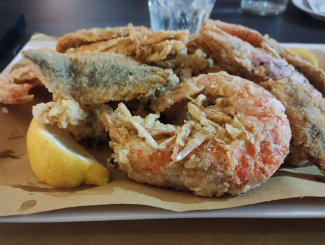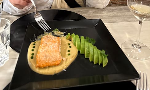 9.5/10Ottimo. Great service. Everyone was very friendly and helpful. Our meal was great. Appetizer of polpo. Surprised it was warm. Panissa, yum. My friend had the salmone and I had polpo. They were both great. Dessert was fantastic. I had this mango thing which I really liked. Then, limoncello and amaro. I can't wait to go back. Appetizer, wine, coperto, acqua, dessert, secondi. 83 euros.