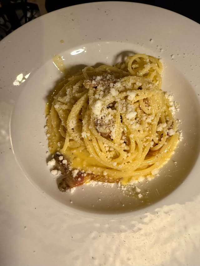 7.5/10In the center of Rome yet very quiet and hardly a tourist around. Chicken salad way too salty. Ambience is great but food disappointing.