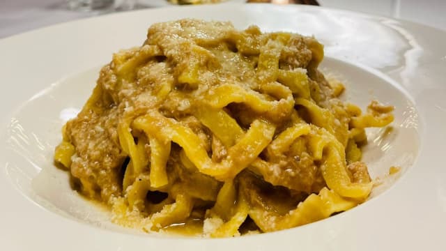 Pomodoro bio, guanciale croccante, pecorino DOP