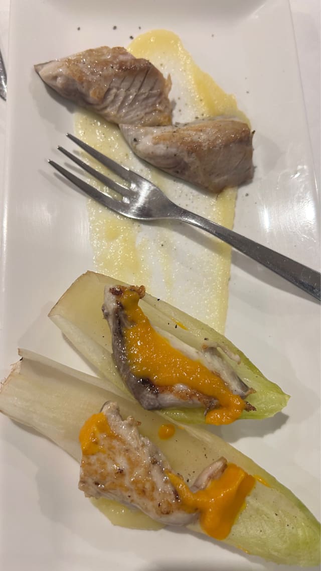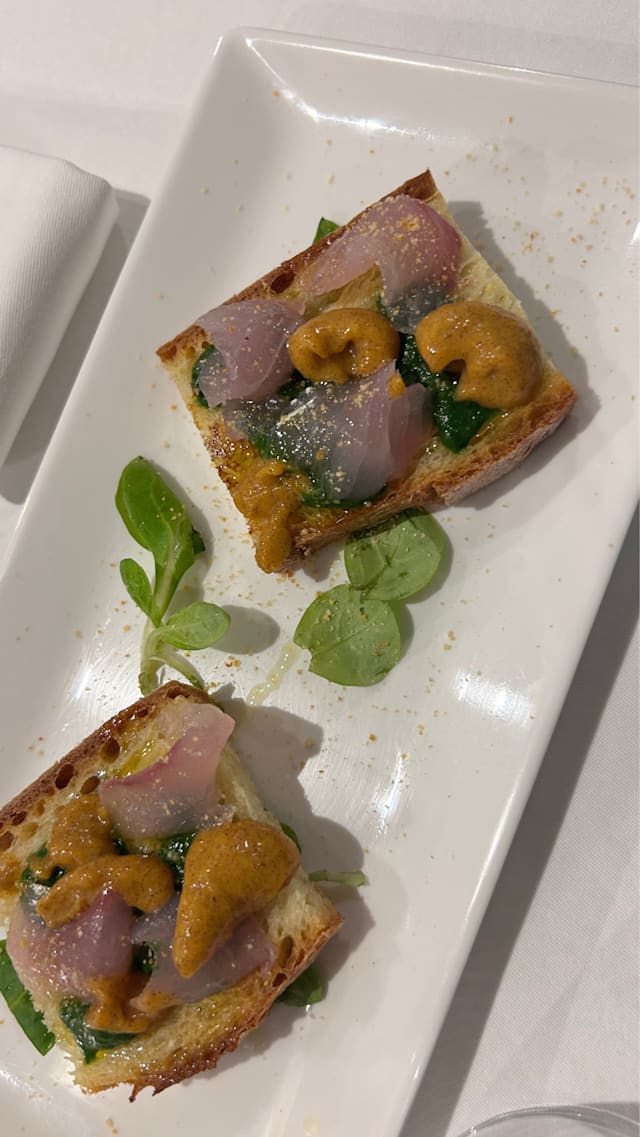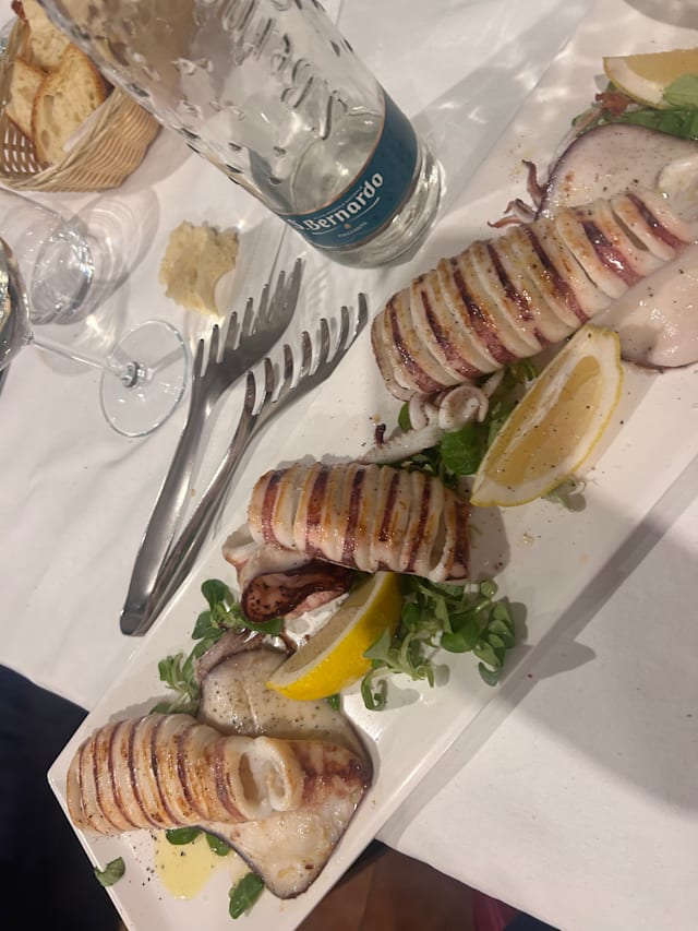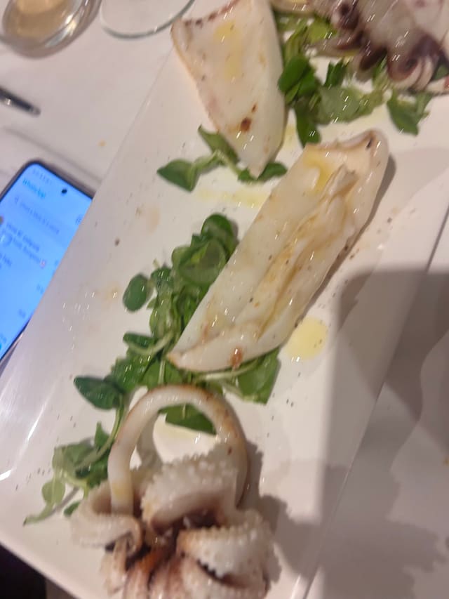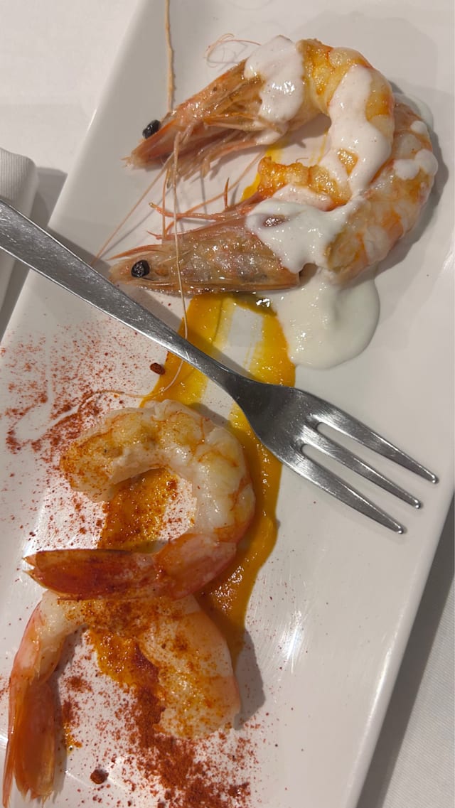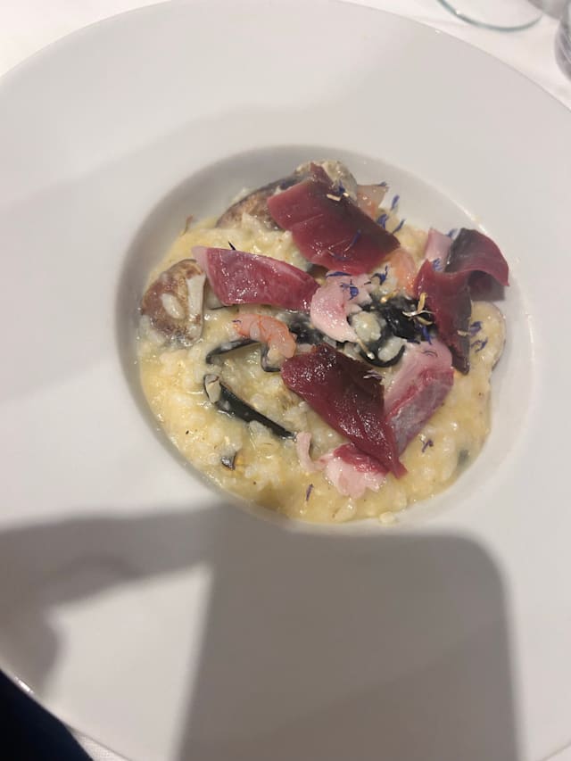 - Tagliatella aglio olio peperoncino e tartare di gambero viola locale