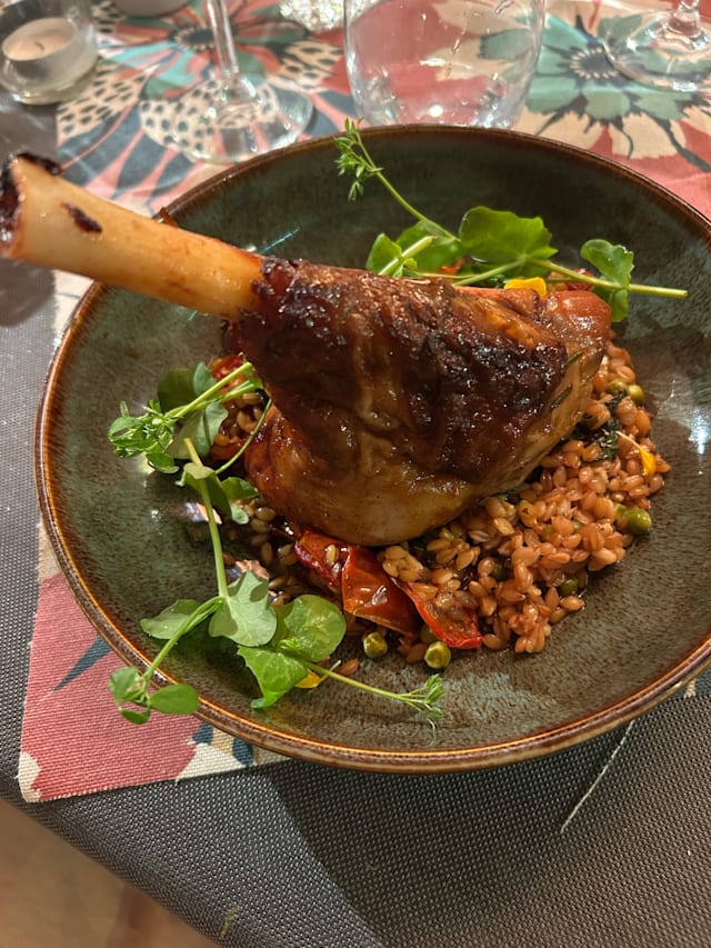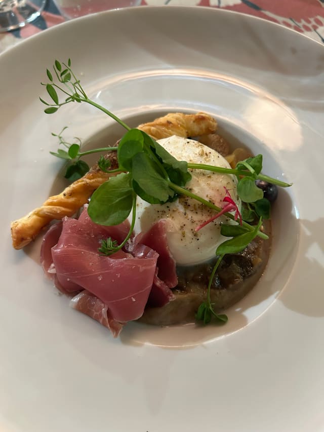 5.5/10A very pretty place down a quiet alley but not worth it. We had chicken Caesar salad which was smothered in balsamic vinegar and seemed to have come out of a bag. The lunch time menu was very limited in choice. Terribly disappointing