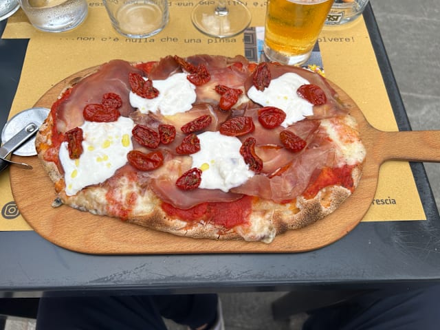 10/10+1A hidden gem just a short walk from the city center! Just a five-minute walk from the busy center of Brescia, we discovered this wonderful little restaurant: La Pinseria. What a breath of fresh air! While people were queuing for a spot on crowded terraces in the city center, we were enjoying delicious pinsas in a relaxed atmosphere and all at a very reasonable price. Also, the espresso here is simply fantastic! The staff is absolutely fantastic: friendly, welcoming, and clearly passionate about what they do. The ambiance is laid-back and authentic, and the location feels like a well-kept secret. The short walk also takes you through charming streets and hidden little shops. La Pinseria is a must-visit for anyone looking to eat well without the crowds and they’re even certified gluten-free! We’ll definitely be coming back.