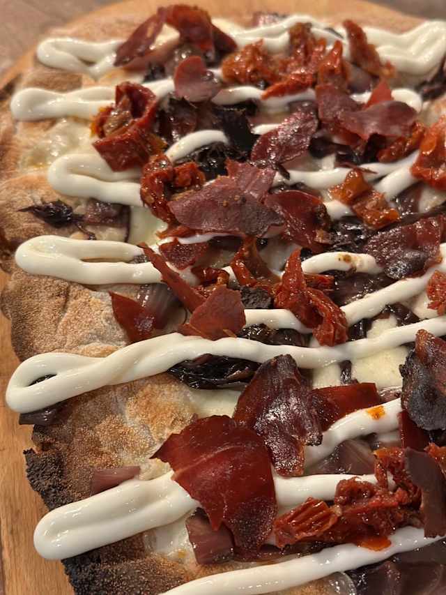 - Fiordilatte di agerola, speck croccante, porcini, gorgonzola