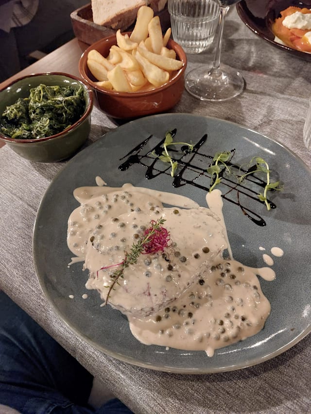 9/10Good restaurant, great steaks and generous portions. Service was a bit slow but they made up for it in attention and friendliness to the client. Overall would recommend!