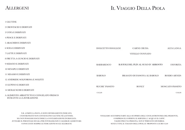 9.5/10Very polite, prepared and friendly service. Excellent food, typical of Piedmont. Good prices. Great!