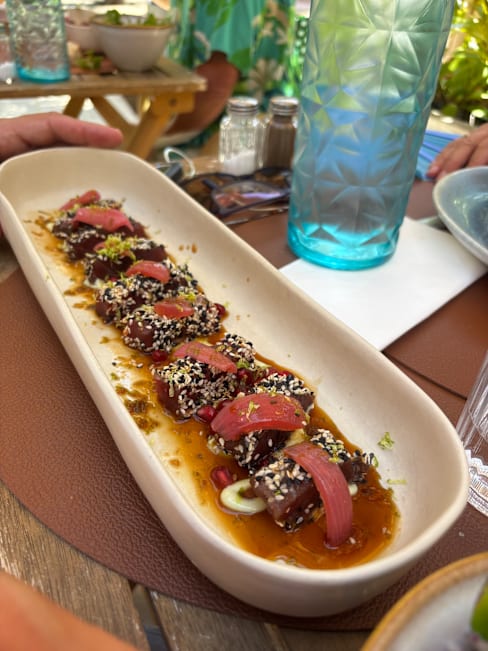 8/10Really nice food and atmosphere at La Piscine. We were with four people, service was very friendly, location outside near the pool was very nice and all starters and main dishes were tasty and more than enough for lunch. Coffee and desserts were yummy, so we left as four very happy persons!