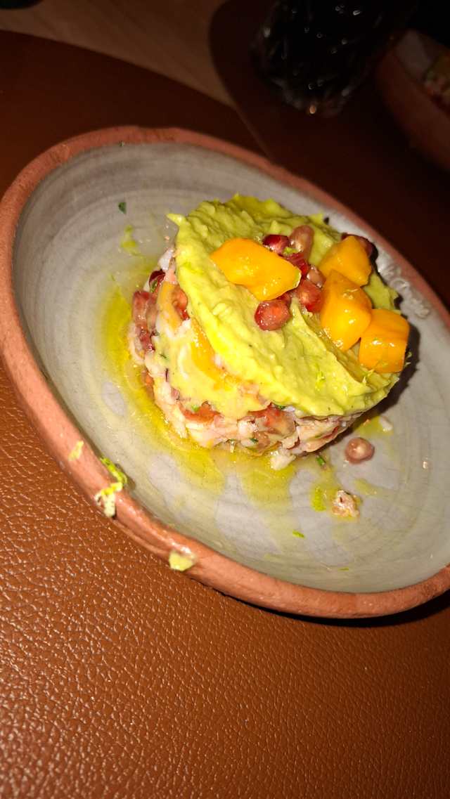 - Tartelette croustillante, mangue, grenade, guacamole et sésame Coup de <3