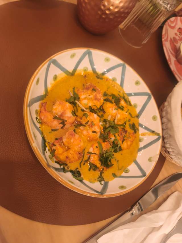 - Crevettes mijotées dans une sauce au lait de coco, parfumée à la mangue verte pour une explosion de saveurs exotiques