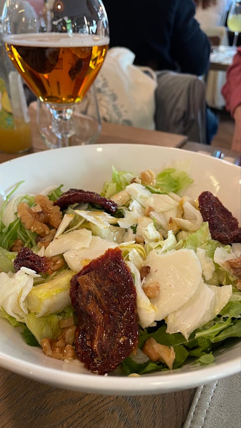 3/10We were disappointed by the price compared to what we eat. For the salad (main dish), I litteraly ate 3 slices of tomatoes and 3 of mozzarella with a little bit of rucola and as for my friend’s pasta, she had not enough and the price was again too high. Moreover, we waited 1h20 before being served.