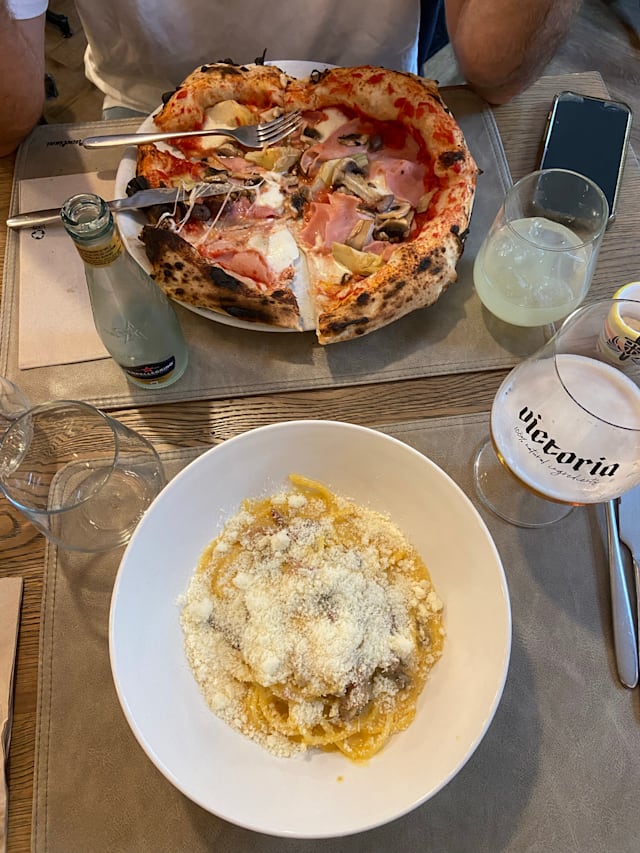 3.5/10The good: Nice sitting area outside The bad: Intimidating people sitting around and smoking a lot. The food was overly salty. Yes, we ordered a carbonara, but it was quite difficult to finish our meals, so we didn’t. One of the people in the staff was quite rude and didn’t even say a word when giving us the menus, just threw them at the table. The woman greeting us was kind. Overall, quite disappointing.