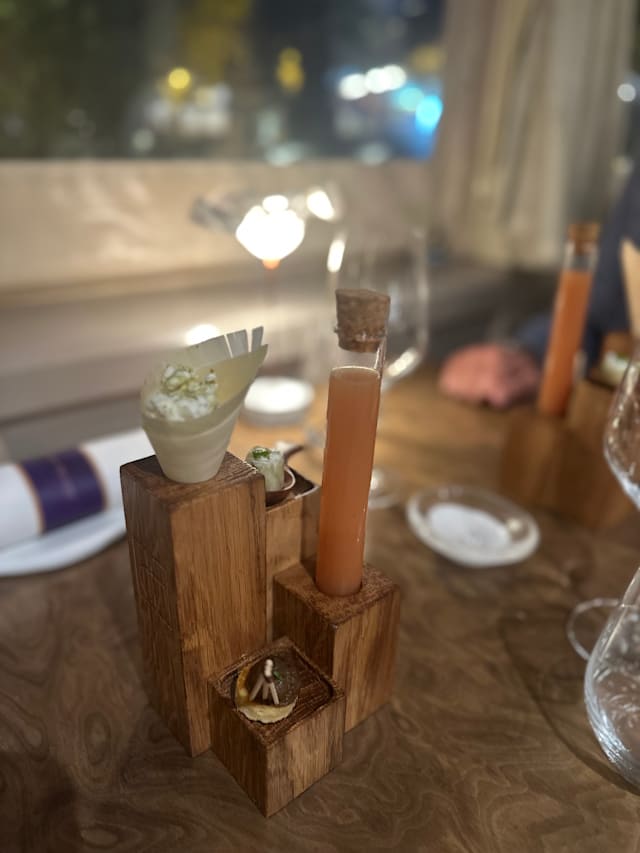 7/10+2a tale of two halves... I enjoyed the majority of the food, I did not enjoy the ravioli or the main which was pigeon. Extremely undercooked. / raw.. really unpleasant on the pallet found a few of the dishes like seasoning. Small things matter like having coasters for glasses in a Michelin star restaurant which were not supplied.. the chair I sat on was damaged whilst it didn't affect the dining experience. It's just not something I'd expect from a high-end restaurant like this.