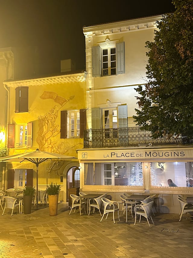 10/10+1We have been visiting Mougins for over 30 years and have been eating at Place de Mougins previously Fou De Folet for 30 years. The restaurant in our eyes can do no wrong. The food, service, and ambience are exemplary. We have had so many lunches & meals here and never been disappointed or had any complaints but have been very happy with our time there. My wife calls it her Happy Place. We love Mougins and love Place De Mougins.