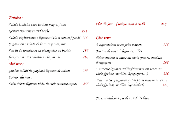 5/10La Place came highly recommended by local (French) friends so we were enthusiastic about trying it. The setting is lovely, situated under the shade of tall plane trees in the village square. Food-wise, my gesiers and duck salad (had it as a main) was very good and the scallops were also good - nothing to fault there - the problem was the service. For mysterious reasons, they did their best to ignore us. Polite requests for a class of wine and mayonnaise for the frites were met with thinly-veiled irritation and they had to be reminded multiple times for the mayo. Bread that should have come to the table as standard (as it was for everyone else) never materialised. In essence, the food was pretty good but the attitude of the staff means that we sadly won’t be returning, which is a pity as we had high hopes. Maybe they were having an off day…