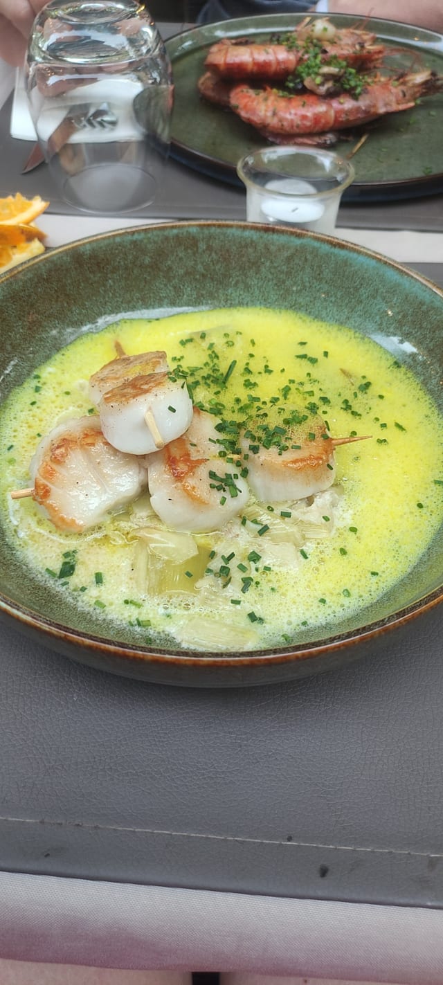 La Place came highly recommended by local (French) friends so we were enthusiastic about trying it. The setting is lovely, situated under the shade of tall plane trees in the village square. Food-wise, my gesiers and duck salad (had it as a main) was very good and the scallops were also good - nothing to fault there - the problem was the service. For mysterious reasons, they did their best to ignore us. Polite requests for a class of wine and mayonnaise for the frites were met with thinly-veiled irritation and they had to be reminded multiple times for the mayo. Bread that should have come to the table as standard (as it was for everyone else) never materialised. In essence, the food was pretty good but the attitude of the staff means that we sadly won’t be returning, which is a pity as we had high hopes. Maybe they were having an off day…