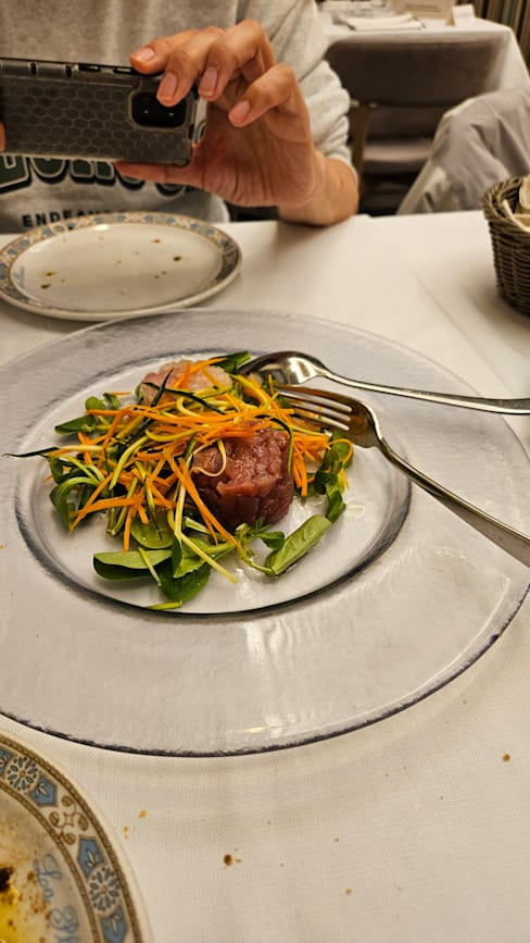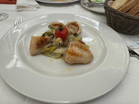 4.5/10Least favorite meal during my 10 days in Italy. Unfriendly service. Sparse portions especially the veal: 3 paper thin slices and some potatoes. Left hungry and disappointed. Poor value. Would not return.