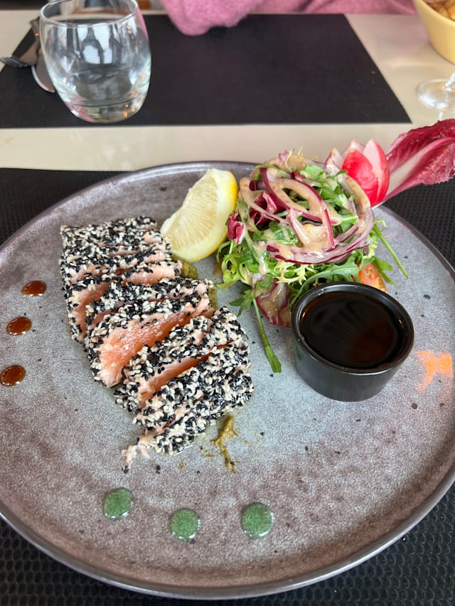 Ok, not the greatest location as it sits next to a major roundabout but the owners have clearly taken care to make you feel welcome and create an intimate ambiance. Welcome and overall service was great, with the lady owner even coming to each table to check that everything was OK. Food was really good and incredibly cheap considering the quality. My wife and I both had calamari on rice, which was creamy, cooked to perfection and with just the right amount of spice. Tarte Tatin for dessert: beautiful! The lady waiter also really looked after us. In short, I’d strongly recommend! We even made it our destination for the day.