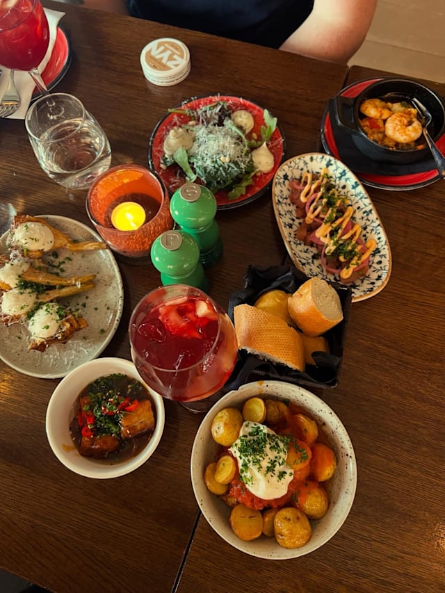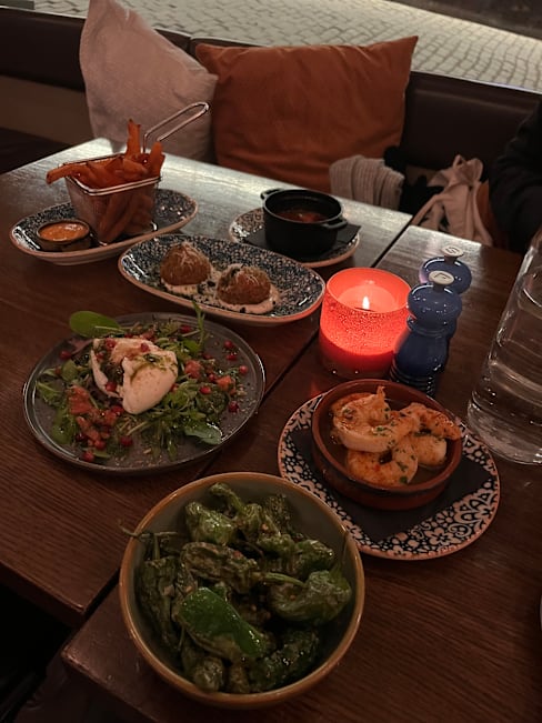 6/10Initial friendly and attentive service, but as often seems to happen with restaurants in Stockholm, after mains are served staff disappear and hard to get their attention, so you give up trying to order another drink and desserts. Disappointing for me as a customer, but a financial loss for the restaurant. Pick up your game! Tapas dishes varied in quality, some such as patatas bravas and gambas al ajillo tasty and authentic. The 'croquette' tapas was no such thing as it lacked any bechamel sauce. Ok experience but will not repeat
