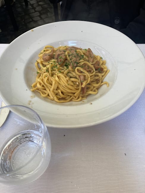 7/10I were expecting a little bit more from the carbonara to be honest. I heard that they made it to perfection, but it seemed like bacon and not guanciale. The creaminess wasn’t there, and it I got way better for less money other places in Rome. The service was formidable, but I think the ambience were a bit cold, and not as cosy as I expected. Some of the other dishes were very good, the ravioli for instance wow. I would recommend, and I would also come back.