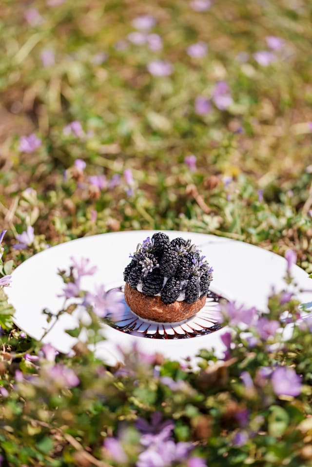 Fonduta di blu di bufala, nocciole tostate, fumo di timo