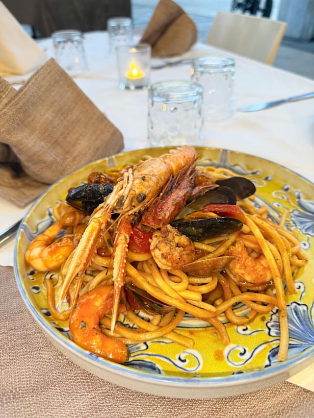 9.5/10Food and service is amazing. Authentic beautiful Puglian food and drink. Service brilliant! We eat outside and the only blip is the dance music from the empty bar next door… which I hope will close down as they had no customers! Unlike La Porta Rosa which was full!! Either way would go back and recommend it whole heartedly…