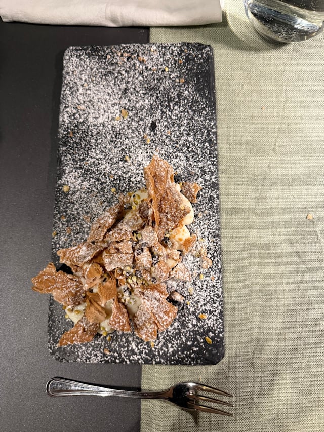 10/10A quiet, exceptional restaurant off the beaten path. Our waiter Francesco was kind and very attentive, and advised us well on both the food and wine. Our octopus starter was divine, and both the pasta dishes (Dinorma and tagliolini with lobster) were delicious. We left room for dessert, and loved the cannolo scomposto and the pistachio tiramisu. The chef (Corradino) came over to chat with us and shared his secret for making the best pasta alla Norma. We highly recommend this gem.
