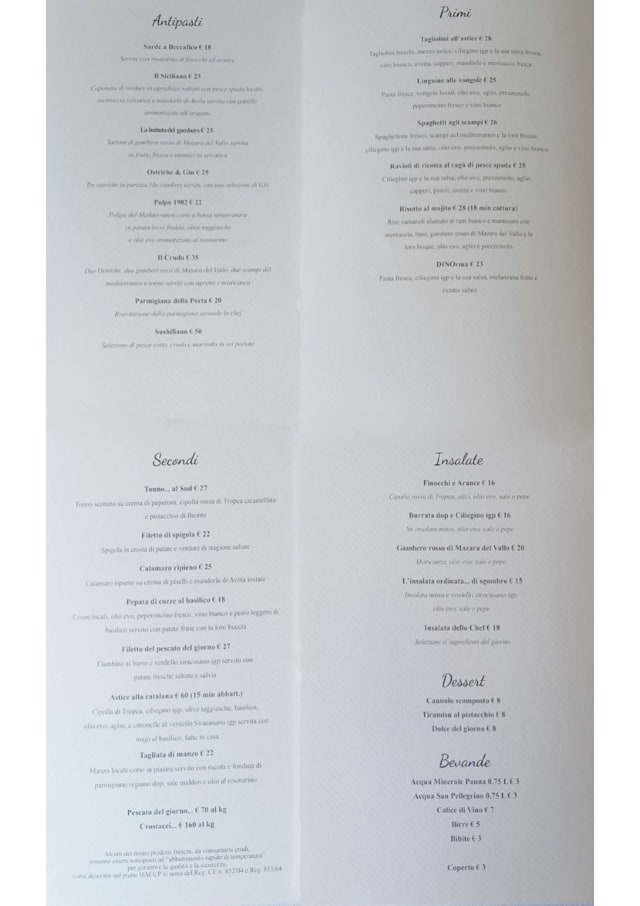4/10The restaurant has just opened for the season and didn’t seem ready to open. Not all on the menu was available and service was poor. Some of the food was good, but some arrived overcooked and cold. Paying was a bit difficult as we had to pay separate for food and drink. It was not clear to us that the 20% discount only applied to the food and not drink. There was no ice to keep the wine cool. Never heard of such thing in a pricey restaurant. Overall it was overpriced, service was bad and some of the entrees arrived cold and overcooked. I don’t think we will be back given the very large number of other very good restaurants in Ortigia.