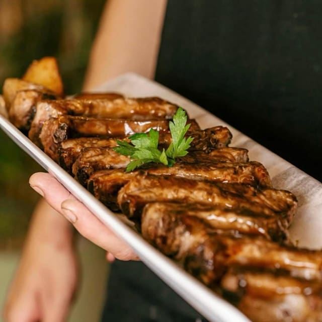 Costillar de cerdo a la brasa de carbón con salsa barbacoa