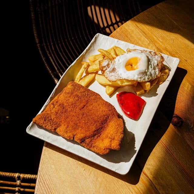 Filete de ternera empanado, relleno de jamón serrano y 4 quesos