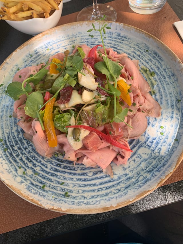 6.5/10Had lunch with a colleague and opted for the “plat du jour” which was well presented and tasty (a single shrimp as a started) although the beef was too hard. With no wine and a “café gourmand” the bill was CHF 50 each, which seems a bit excessive. Nothing to complain about the place but they seem to be just a step away from becoming a tourist trap and that would be a real pity.