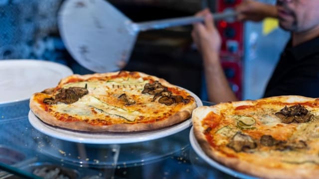 Mozzarella, champignons, jambon cuit, œuf et origan