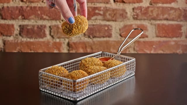 Parmesano, un toque de ralladura de limón, cebolla y perejil. La prima sexy de la croqueta que vino de vacaciones desde brasil. Pruébala y nos cuentas.