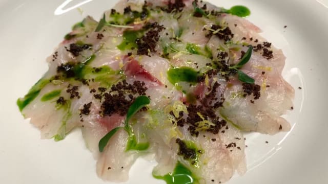 Carpaccio di dentice emulsione di pompelmo rosa e menta