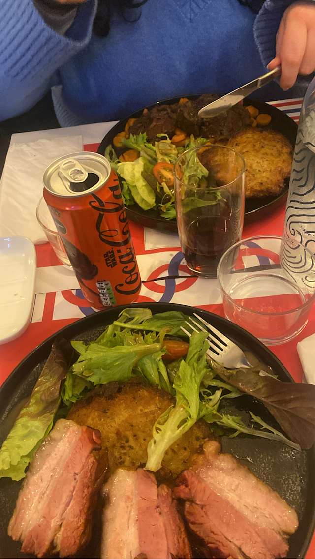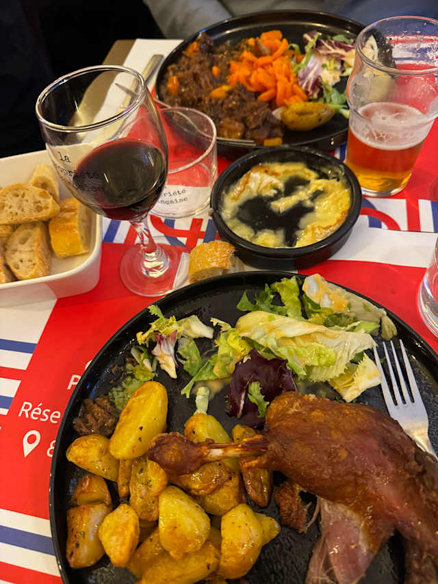 8/10We showed up early for our reservation and they were happy to seat us early. It’s a small restaurant but everyone seemed to be enjoying themselves. My husband was pleased with the Pork au Carmel and I enjoyed my Canard confit. The skin was nice a crispy. I liked that the server checked back a couple of times to make sure we did not need anything else.
