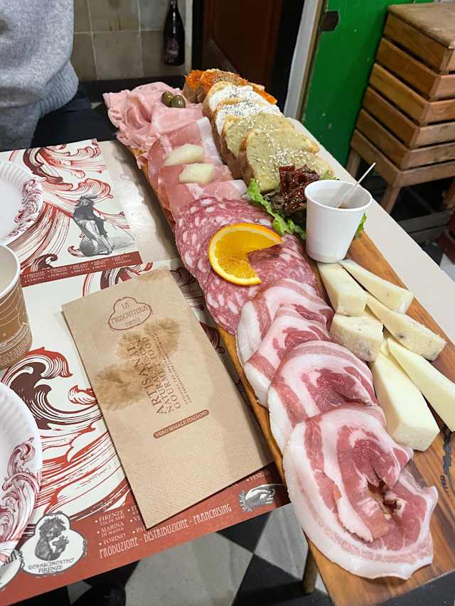 4 Tipi di salumi, 3 tipi di formaggi, 3 tipi di crostini, 2 salumi speciali, 1 formaggio gourmet e 1 crostino speciale, verdurine, confettura, miele e frutta di stagione. Serviti con cestino di pane fresco