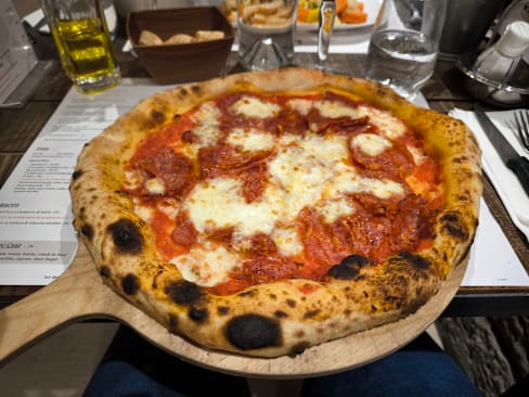 8/10Nice place, happy people and very very good pizza. I am boring and I always get the same type - Margherita with normal or buffalo mozzarella... but I am never disappointed!!