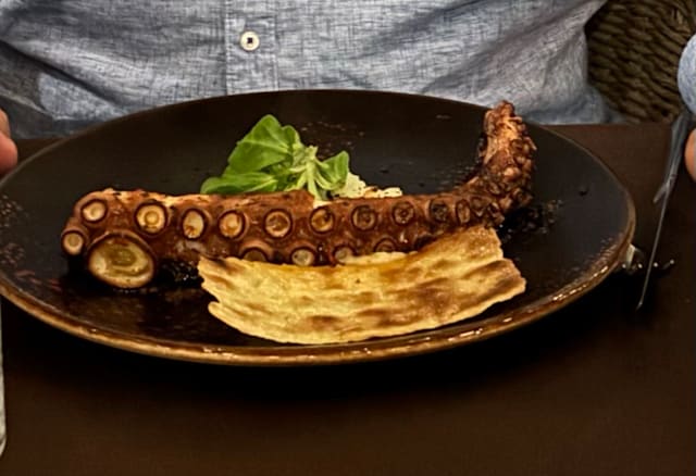 10/10Memorable meal for all the right reasons. The two of us were seated in a charming outdoor courtyard. We had the Pan de cristal con tomate y Aceite de Oliva Virgen Extra (crystal bread) and a bottle of wine, followed by Tataki de atún rojo (tuna tataki) and Pata de Pulpo con base de parmentier de patata y sal Maldon (octopus leg). The food was perfect and so was the service. No surprise, another couple next to us was there for a second night in a row.