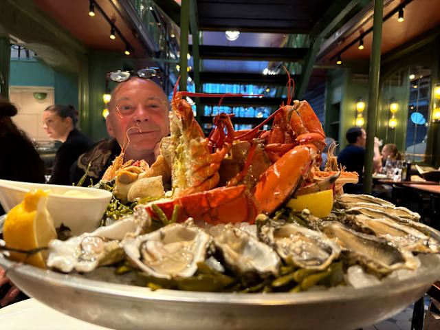 Range of 8 oysters, half tourteau pp, 1 langoustines and half lobster pp, pink prawns, grey shrimps, whelks and winkles,
