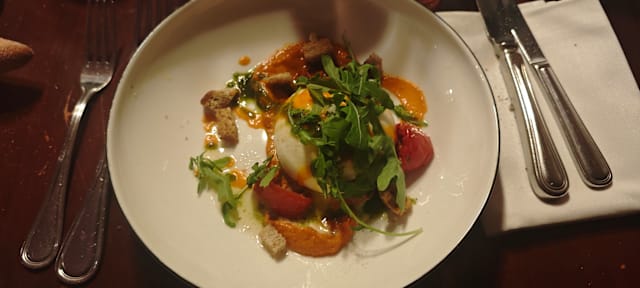 Burrata, tapenade of red pepper, sundried tomatoes and tomato vinaigrette