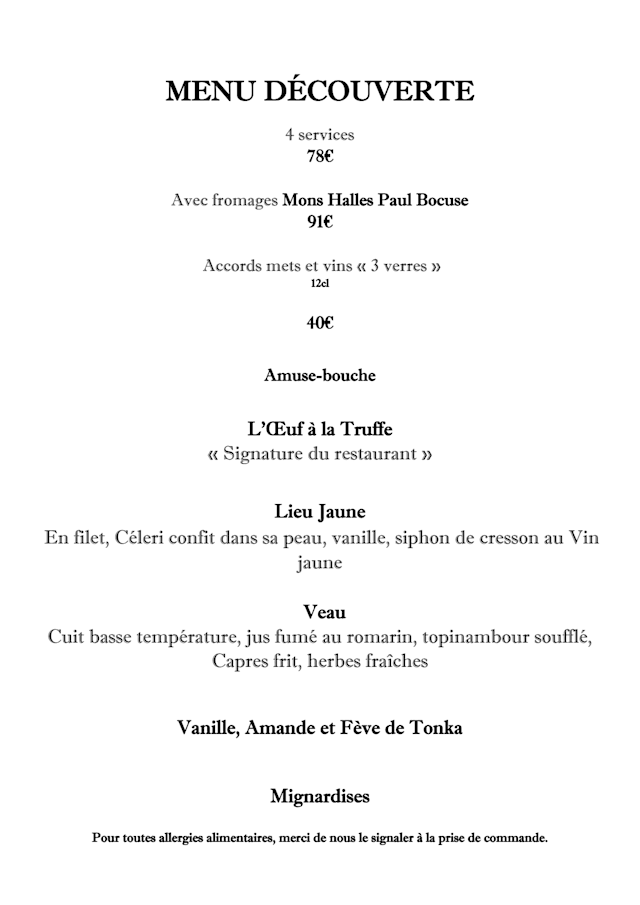 10/10A beautiful restaurant with excellent gourmet food. More for a special occasion than daily consumption. Many classic Lyon touches like eggs, truffles, flaky cod and tender lamb.!