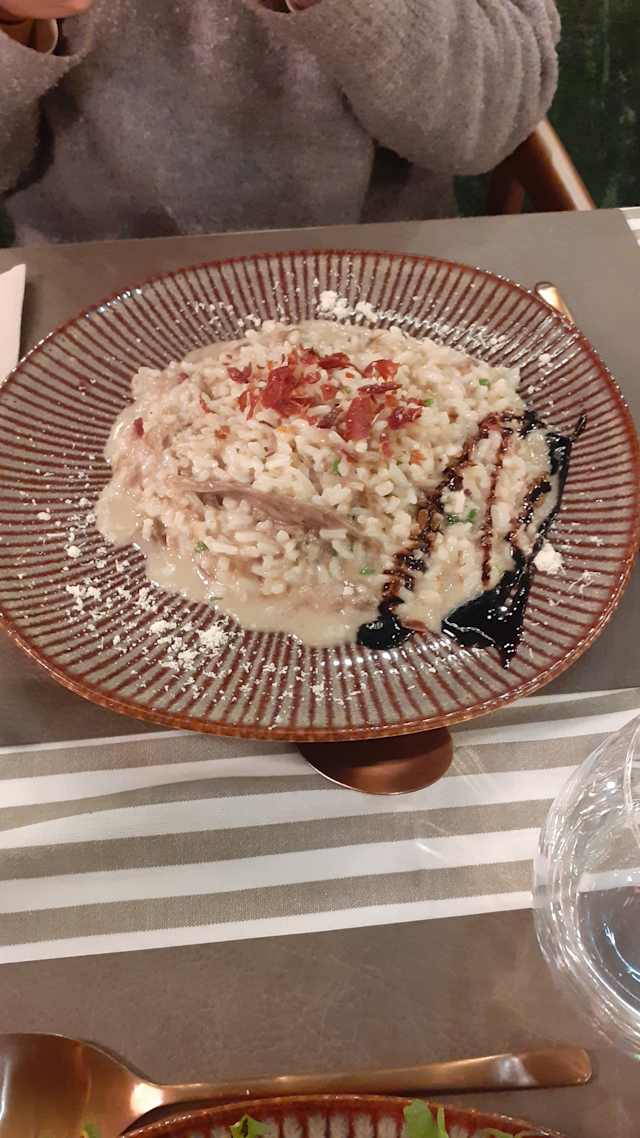 - Massa recheada com cogumelos porcini e molho 4 queijos, com mistura de alfaces e tomate cherry