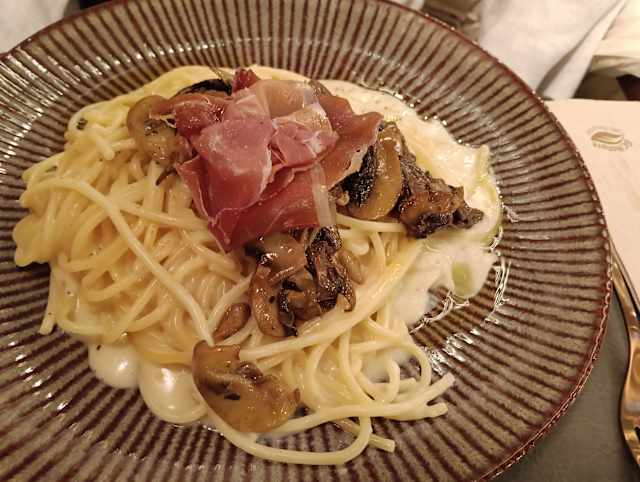 - Massa tagliatelli, ovo, bacon e queijo parmesão