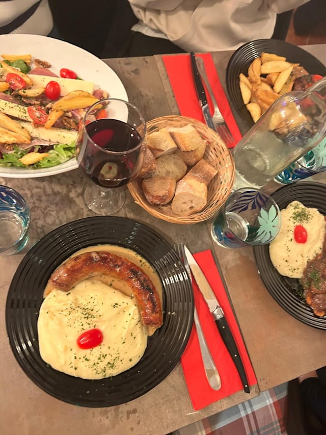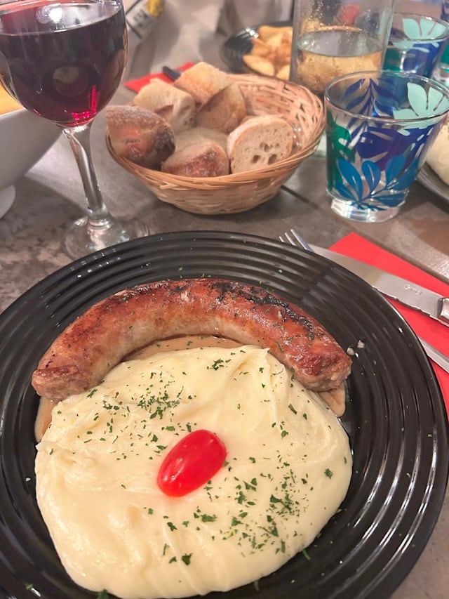 7.5/10Hidden in a tiny little street near the Pompidou Museum, a ultra touristic area, this restaurant serves what is probably one of the best "aligot" in Paris, that is a mashed potatoes base whipped up with melted cheese, alongside a nice piece of sausage. A glass of red Cote du Rhone wine and you are all set. The place is really small and you might have to share you conversation, willy nilly, with your neighbours.