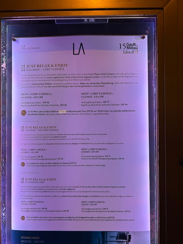 9.5/10We took the 4-courses menu. The first two course were really wonderful. The third one (meat based) was good but not exceptional. The dessert was also good but nothing exceptional.