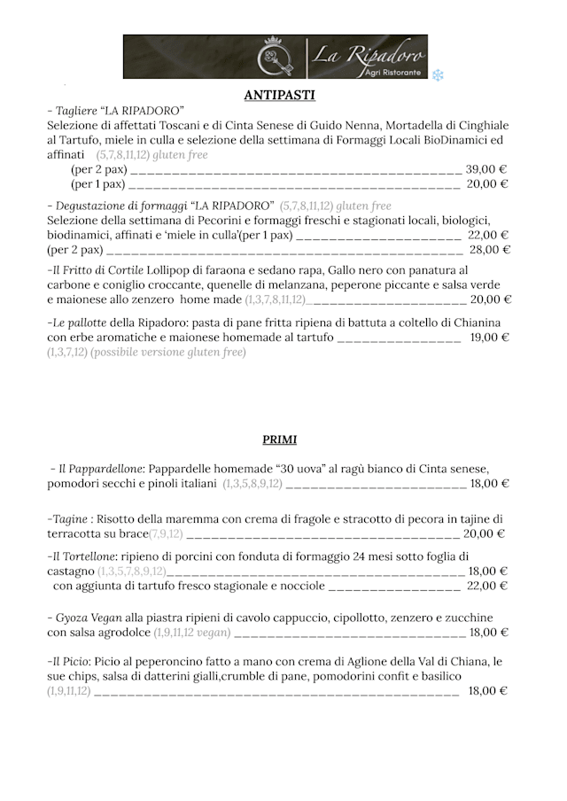 9/10+1Another great meal at La Ripadoro, the service has improved from the busy summer, and the ambience inside is beautiful. The food is well presented and tastes amazing, the primi courses were the highlight. We were glad to share the experience with our friends will be back again soon