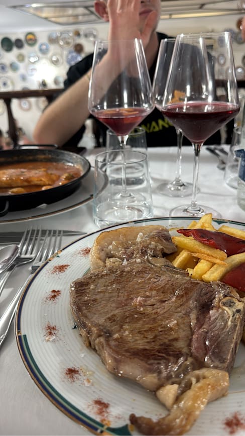 4.5/10We had a 9:15 reservation and arrived promptly. Although there were many open tables downstairs, we were put upstairs in a corner, not 2 feet from the bathroom door. There was a table of 30 American students next to us. We were seated first yet their orders were taken before ours. It took 30 minutes for someone to take our order and then another 15 minutes to get a glass of water. We weren’t served our food until we were there for one hour and 15 minutes and we did not order paella. It was a very simple piece of salmon and a piece of steak. The salmon was actually very good, but the steak was almost a grey color, and it was so overcooked that there was at one point I choked on it The table next to us had 5 paellas brought to them before we even got our food. I don’t understand. Maybe they forgot about us cause we were in a corner next to a bathroom, but it was truly one of the worst experiences I’ve ever had out in this City.