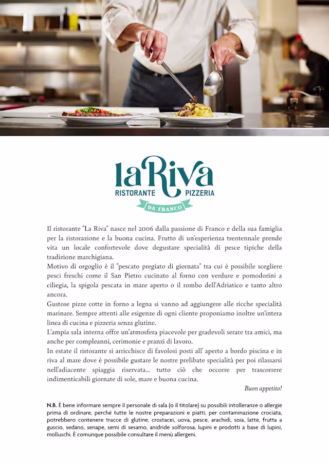 VISTA PANORAMICA - A pochi passi dal mare di Marotta, in provincia di Pesaro e Urbino, sorge il Ristorante La Riva. Un ambiente accogliente e cordiale, impreziosito da un arredamento semplice ed elegante. La struttura dispone anche di una zona esterna a bordo piscina, con vista mare.