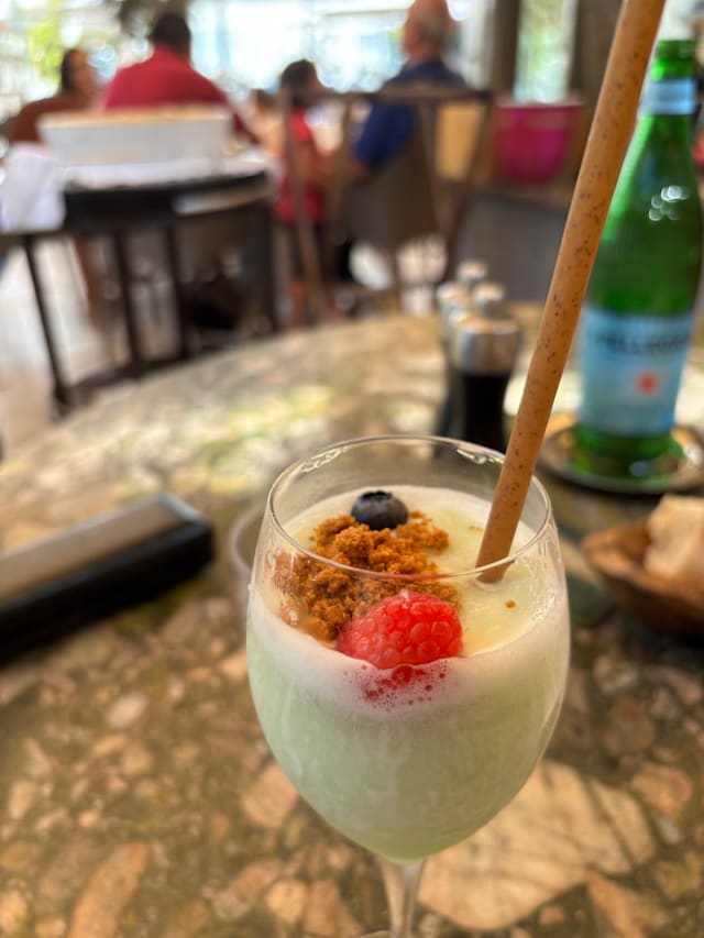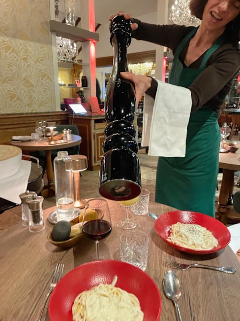 10/10My husband and I had a beautiful meal here on our last night in Paris, with out daughter (2yo). I had "The Original 1988" La Romantica past and it was served from a cheese wheel melted with a cognac flame, a great show! My husband had the tagliolini, also delicios. The venue itself was so beautiful, the glass walls and ceilings surrounded by trees and outdoor lighting, bringing the outdoors in, we had a late meal in Octoer, I would definitely like to experience the outdoor eating area in summer.